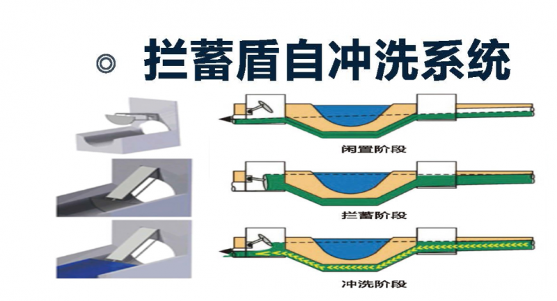 管道攔蓄自衝洗係統(簡稱攔蓄盾)既是產品,也是係統,它用來對較大的管道、整個管網進行整體優化,也用來對單個管段進行優化。